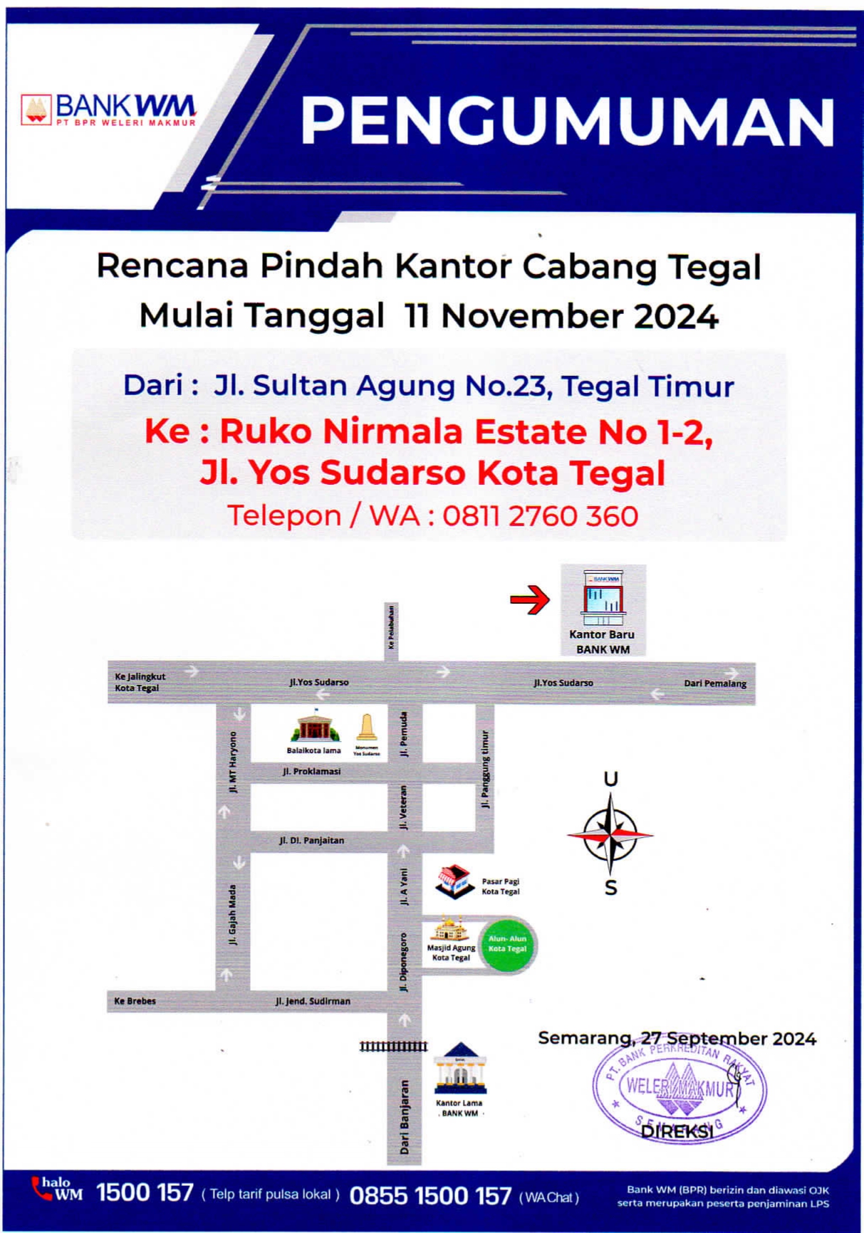 Pengumuman Rencana Pindah Kantor Cabang Tegal